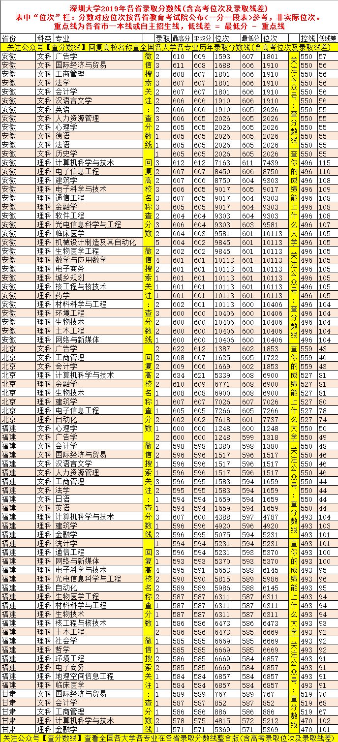 以上为深圳大学在部分省市高考分数线,其它省市分数线详见深圳大学官方网站。