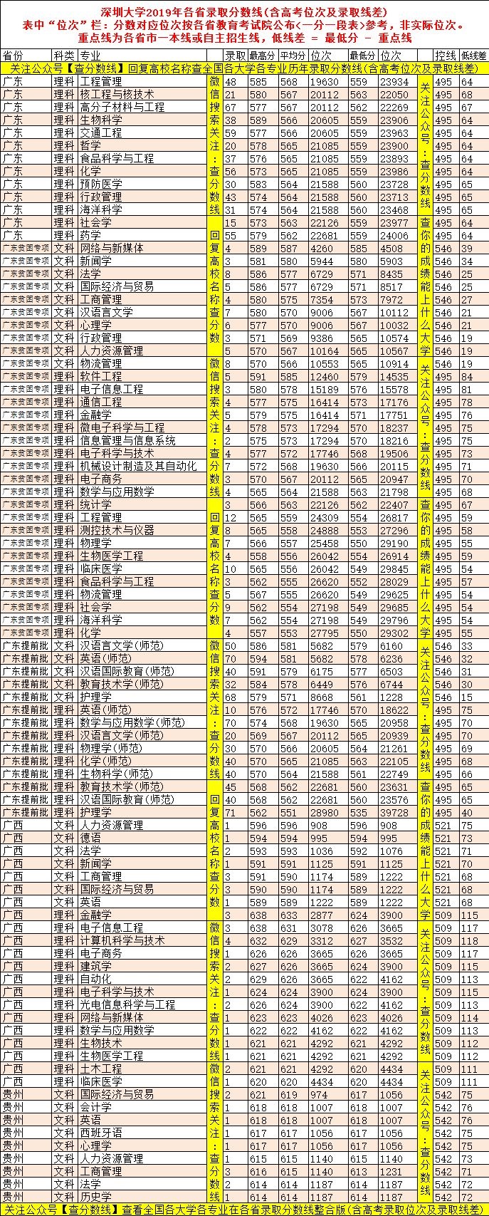 深圳大学录取分数线