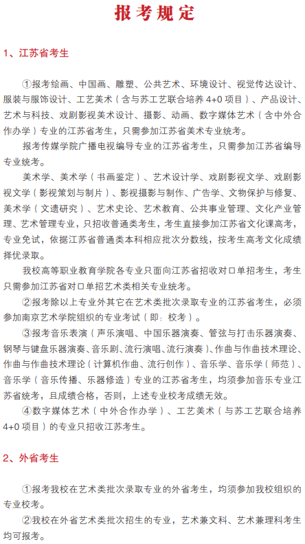 南京艺术学院2021本科招生简章 报考条件是什么 时间:2021-04-21 16:03 招生简章 南京艺术学院2021年本科招生简章已经发布,小编整理了相关内容,来看一下吧!南京艺术学院2021年本科招生简章