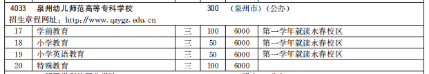 泉州幼儿师范高等专科学校2021高职分类招生计划