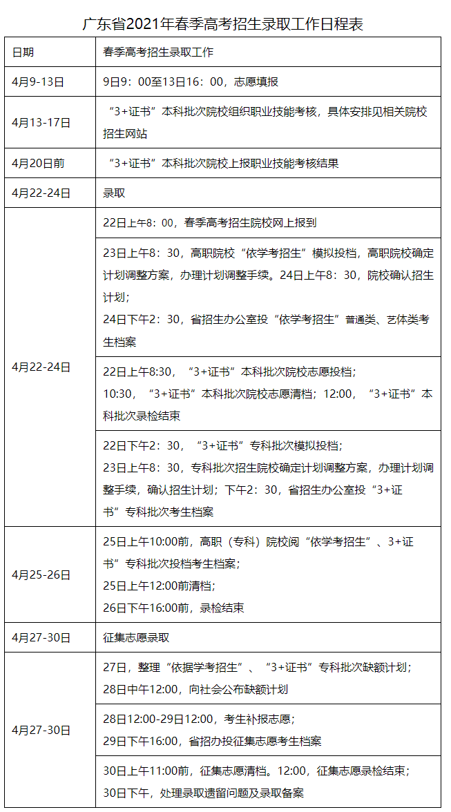 2021广东春季高考录取日程表已经公布,小编整理了相关信息,来看一下!