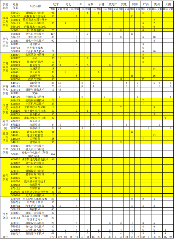 2020沈阳职业技术学院部分省份招生