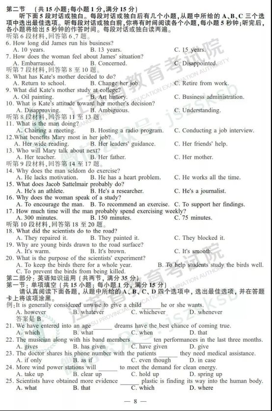 2019江苏高考英语试题及答案【图片版】 时间:2019-06-10 13:55 英语试题 江苏高考英语卷 半岛网页版登录入口 | 江南在线 | 星空平台客服 | IM在线 | 开云在线开户/注册/备用/官网 | 乐竞在线注册 | 完美在线 | 江南官方网站·(中国)集团股份有限公司 | 江南注册 |