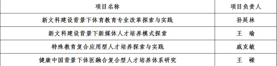按照教育部办公厅关于推荐新文科研究与改革实践项目和市教委关于组织开展遴选推荐首批新文科研究与改革实践项目的相关通知要求,我校精心组织申报,共申报4项,最终全部获准立项。