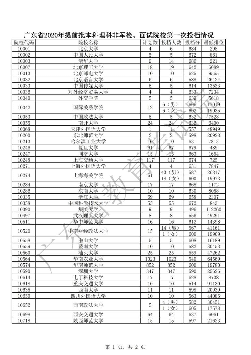 以下是广东省教育考试院公布的广东省提前批学校录取情况,供参考:
