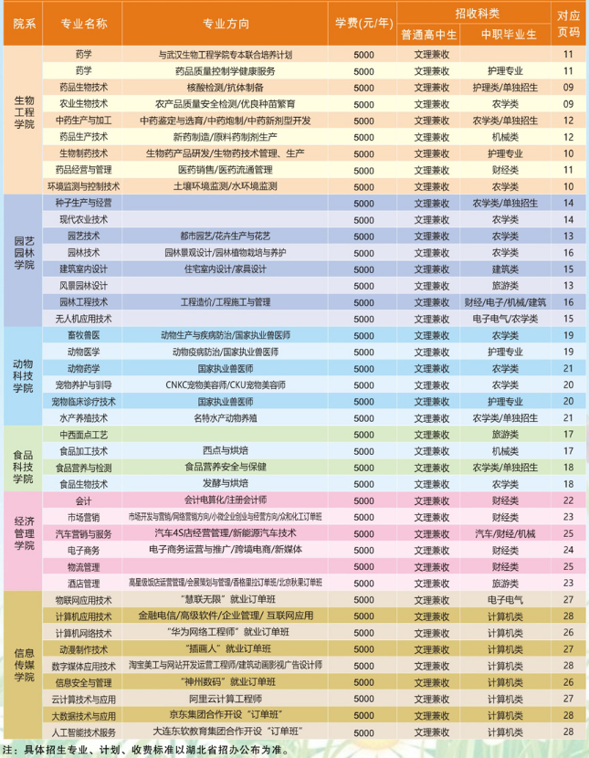 2020年湖北生物科技职业学院招生专业一览表