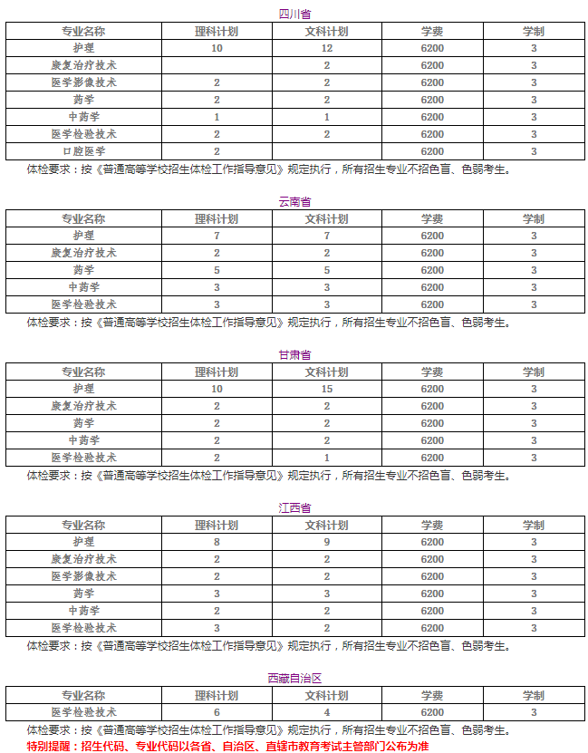 2020苏州卫生职业技术学院外省招生专业