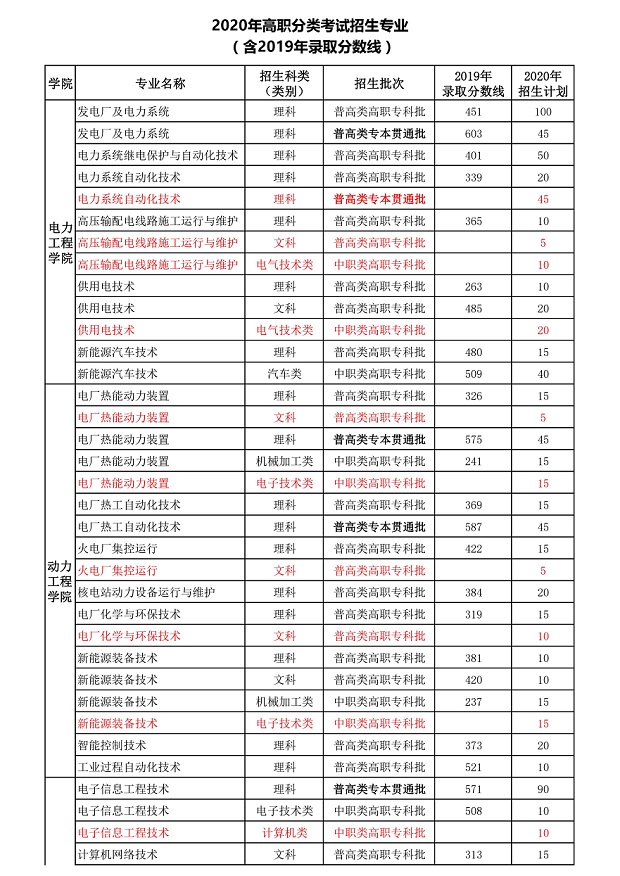 重庆电力高等专科学校2019分类考试分数线