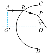 的透明球体中,并被球内经一次反射后再折射后射出,入射和折射光路如图所示。真空中的光速为