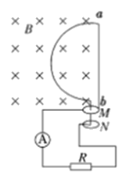 8.如图所示,一个半径为r的半圆形线圈,以直径ab为轴匀速转动,转速为n,ab的左侧有垂直于纸面向里(与ab垂直)的匀强磁场,磁感应强度为B。M和N是两个集流环,负载电阻为R,线圈、电流表和连接导线的电阻不计,则电流表的示数为。( )