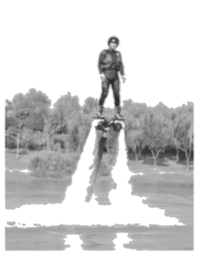 10.运动员在水上做飞行运动表演他操控喷射式悬浮飞行器将水带竖直送上来的水反转180°后向下喷出,令自己悬停在空中,如图所示。已知运动员与装备的总质量为90kg,两个喷嘴的直径均为10cm,已知重力加速度大小g=10m/s2,水的密度ρ=1.0×103kg/m3,则喷嘴处喷水的速度大约为( )