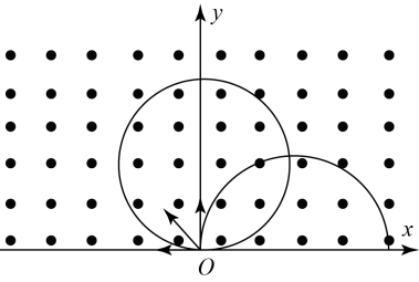 ,知沿x轴负轴的刚好进入磁场做一个圆周,沿y轴进入的刚好转半个周期,如图,在两图形的相交的部分是粒子不经过的地方,故D正确;