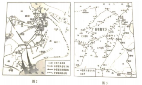 10.图 2、图 3 是中国抗战时期两次战役形势图。这两幅图反映