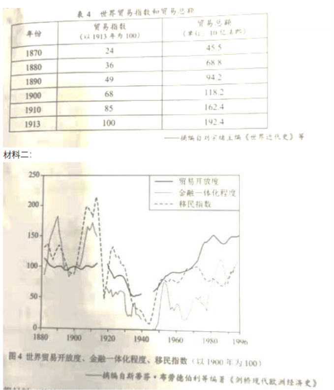 根据材料一并结合所学知识,分析经济全球化在 1870 年到 1914 年间达到小高潮的