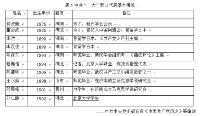根据材料,归纳中共“一大”代表群体的特点。(4 分)