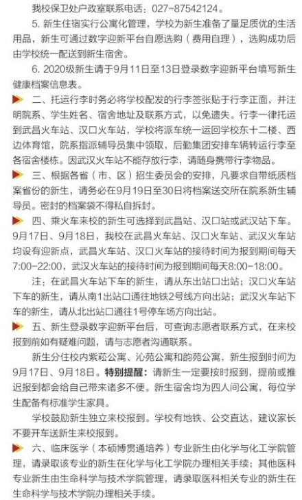 华中科技大学2020大一新生开学报到时间