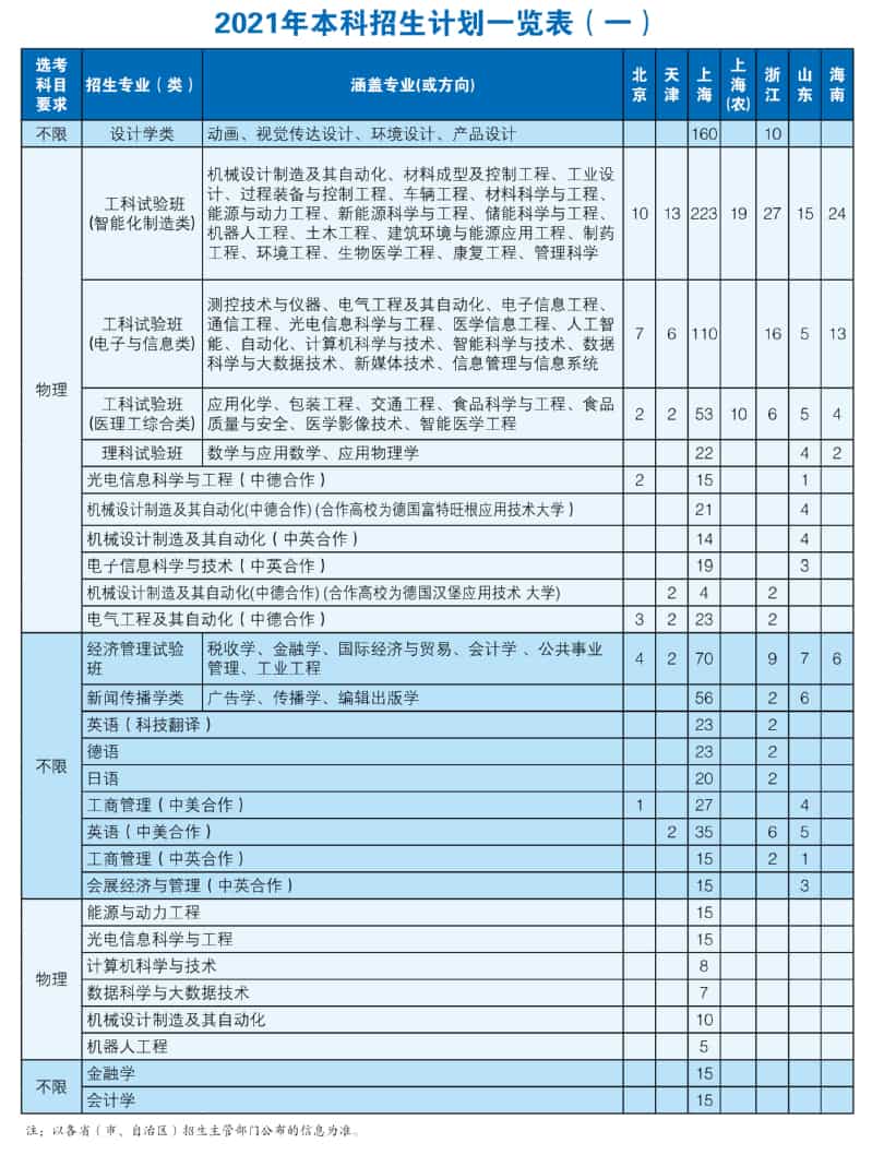 上海理工大学2021年招生计划已经公布了,小编整理了上海理工大学2021年在各省的招生计划及人数,赶快来看吧!