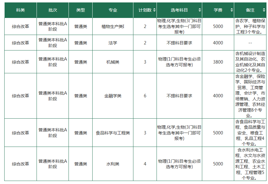 学校设有17个学院和1个教学部。现有3个国家重点学科,3个国家重点(培育)学科,2个农业农村部重点学科,2个省级重点学科群,10个省级一级重点学科,4个学科进入ESI国际学科排名前1%。学校是全国首批具有博士、硕士学位授予权的高等学校之一,现有10个博士学位授权一级学科点,22个硕士学位授权一级学科点;1个博士专业学位授权类别,13个硕士专业学位授权类别;10个博士后科研流动站、2个博士后科研工作站;75个本科专业,国家级特色专业10个,国家级一流本科专业建设点18个、省级一流本科专业建设点30个,入选国家级综合改革试点专业1个。