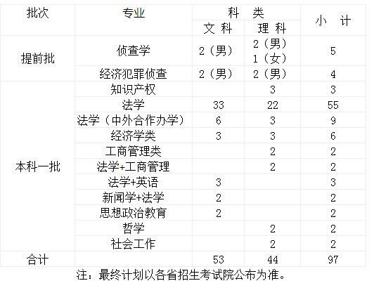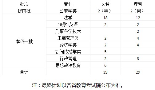 西南政法大学2021各省招生专业及招生计划