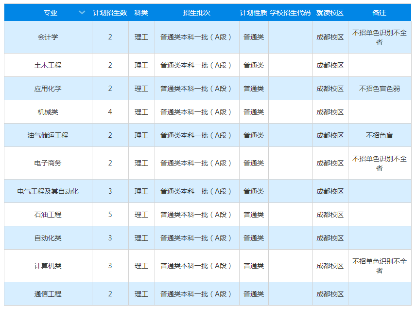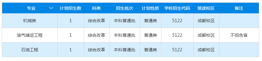 以上为西南石油大学在部分省市招生计划及人数,其它省市招生计划详见学校官网。