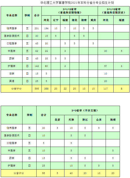 2021华北理工大学冀唐学院招生计划 各省招生人数是多少
