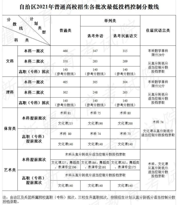 2021年新疆分数线