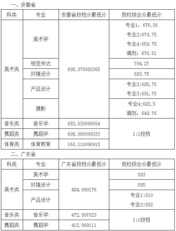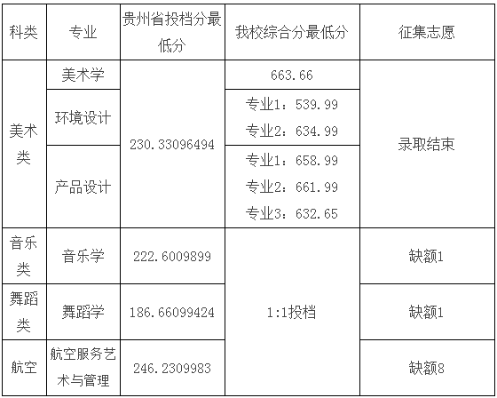 贵州(有征集志愿)艺术类平行志愿投档录取分数线