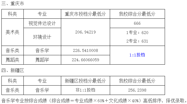 海南、甘肃、重庆、新疆艺体类录取分数线