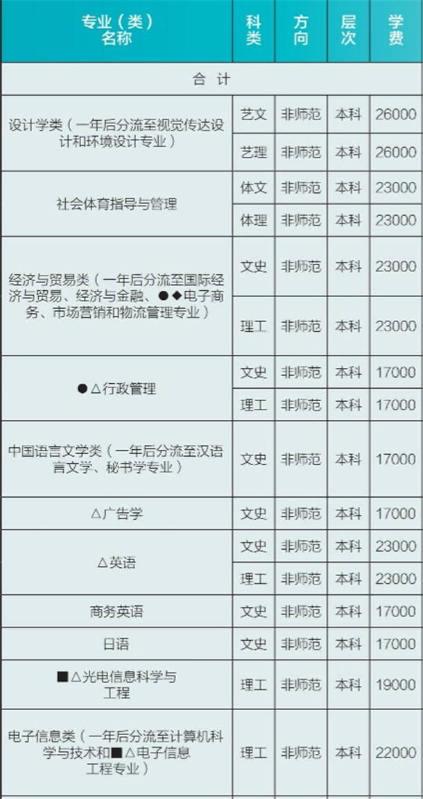 2020湖州师范学院求真学院商务英语、日语、广告学、行政管理专业学费为17000/年;英语、社会体育指导与管理专业学费为23000/年;设计学类专业26000/年;护理学专业学费2400/年。