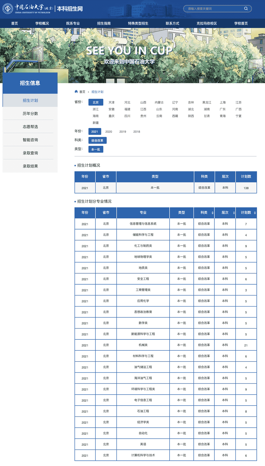中国石油大学(北京)2021年招生计划