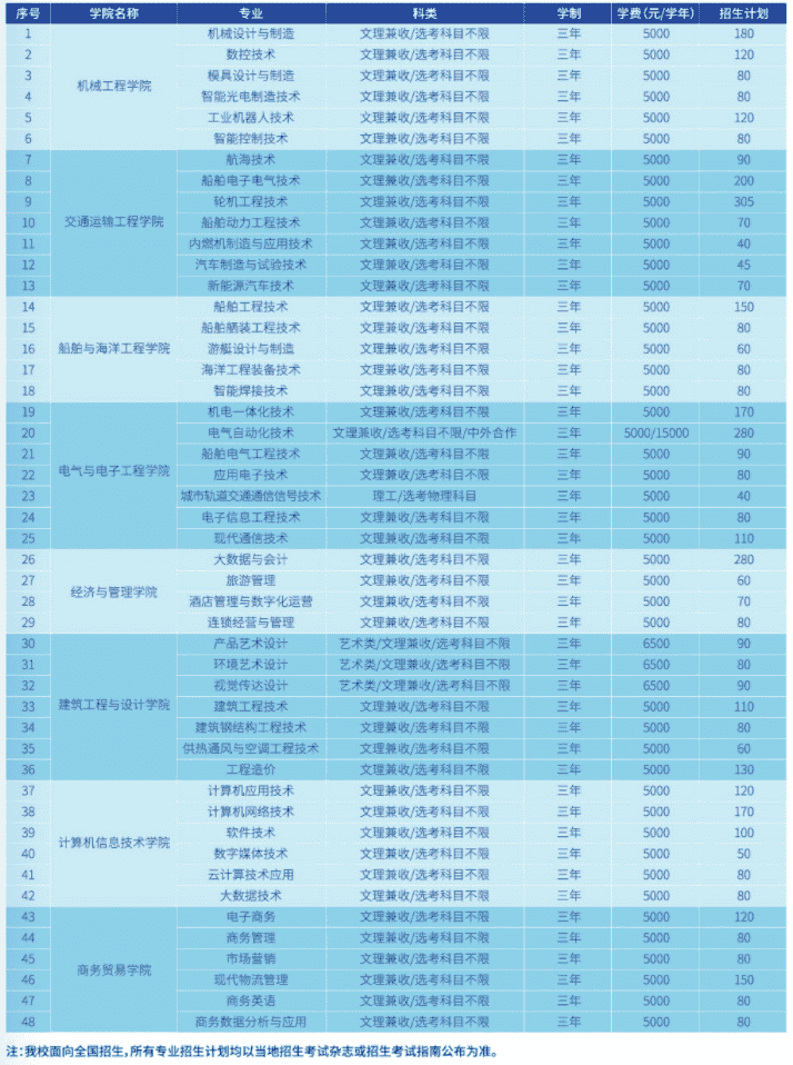 2021武汉船舶职业技术学院招生计划