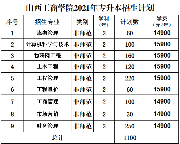 1、山西工商学院收费项目及收费标准2021山西工商学院学费标准: