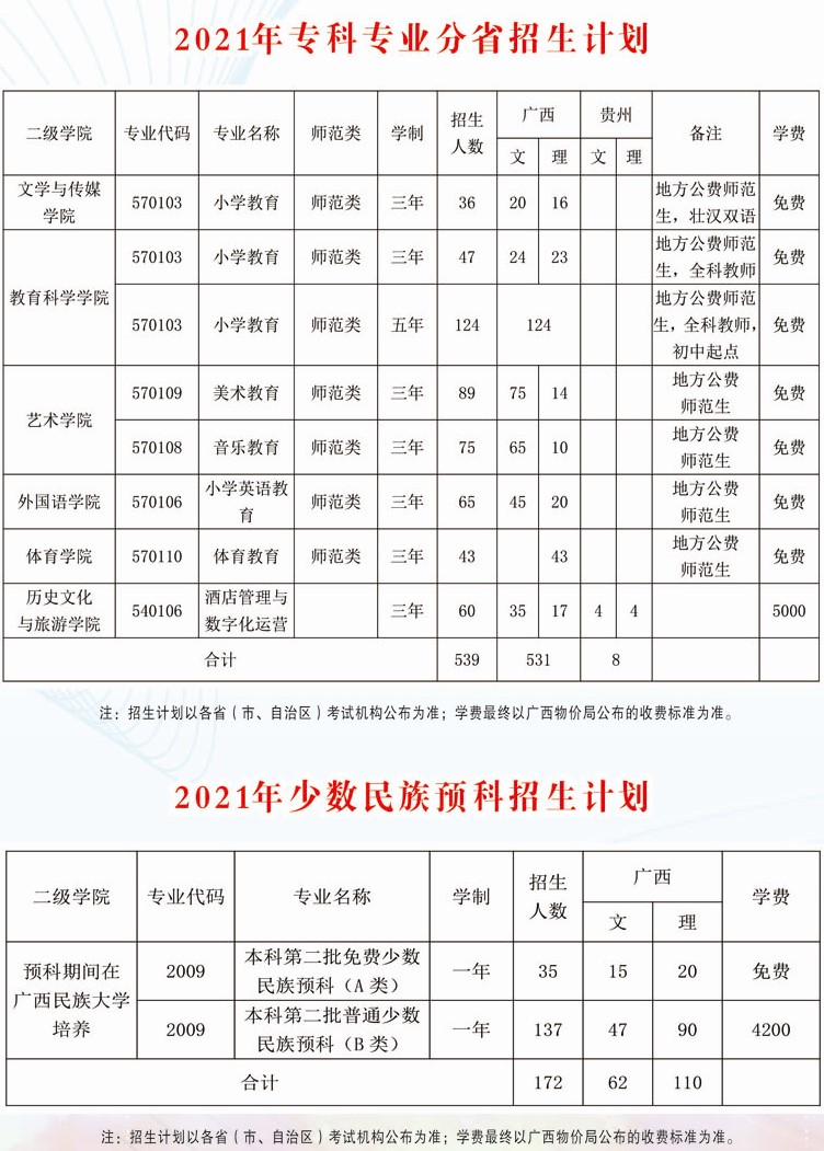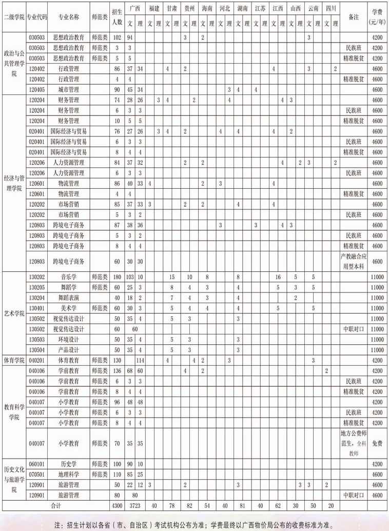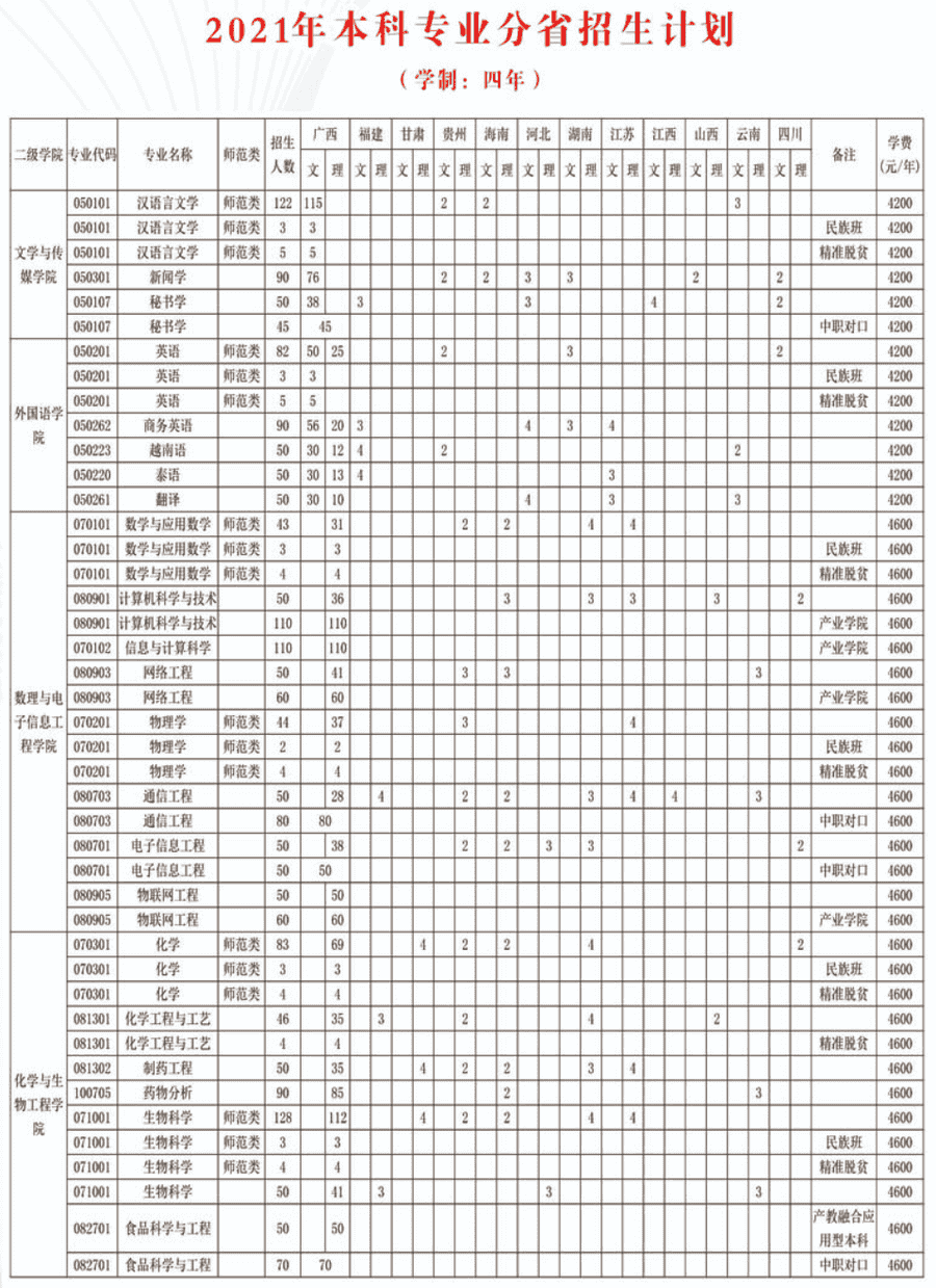 一、广西民族师范学院收费项目及收费标准2021年广西民族师范学院学费标准: