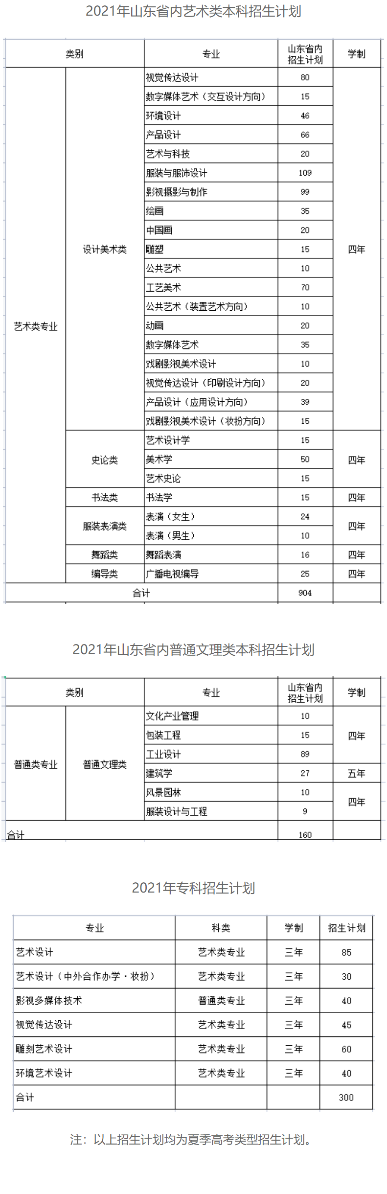 2021年山东工艺美术学院招生计划已经公布,以下是山东省及全国各专业招生人数,这是填报志愿时非常重要的参考数据,供大家参考,如有变动,以学校官方公布为准:
