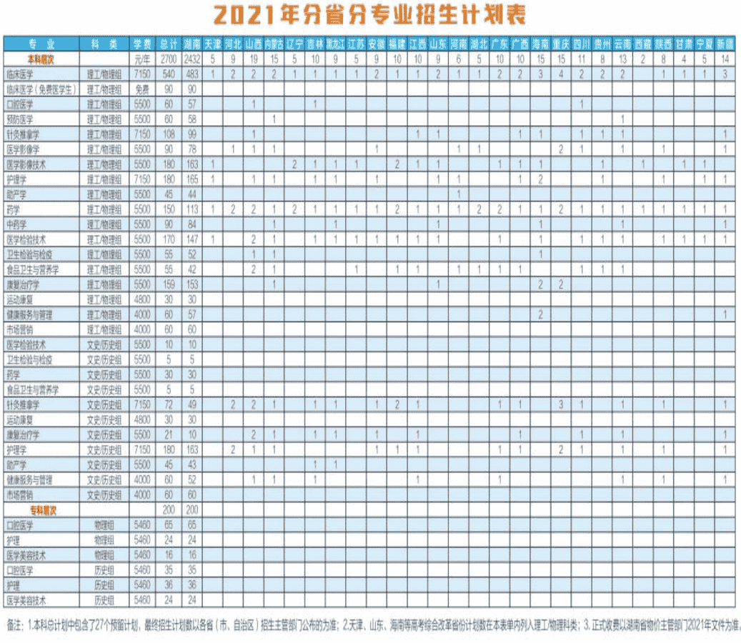 2021年湖南医药学院招生计划已经公布,以下是湖南省及全国各专业招生人数,这是填报志愿时非常重要的参考数据,供大家参考,如有变动,以学校官方公布为准: