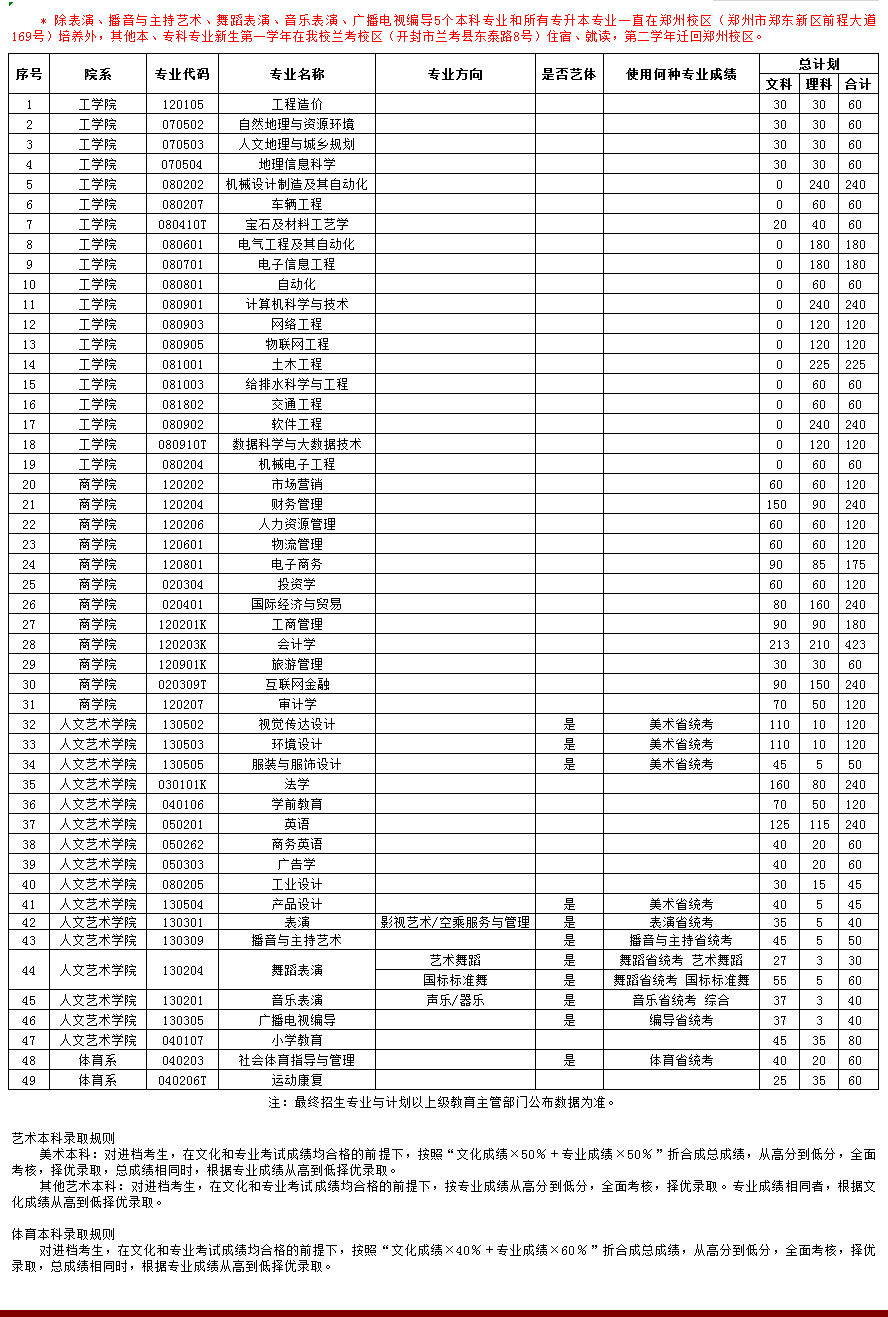 2021年郑州工商学院招生计划-各专业招生人数是多少