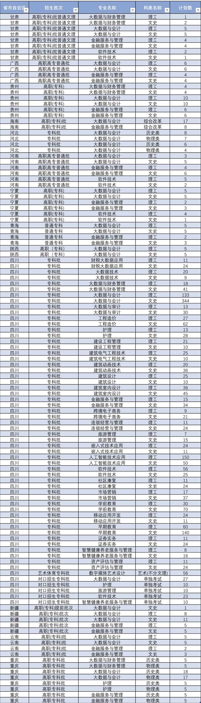 2021年西南财经大学天府学院招生计划已经公布,以下是四川省及全国各专业招生人数,这是填报志愿时非常重要的参考数据,供大家参考,如有变动,以学校官方公布为准: