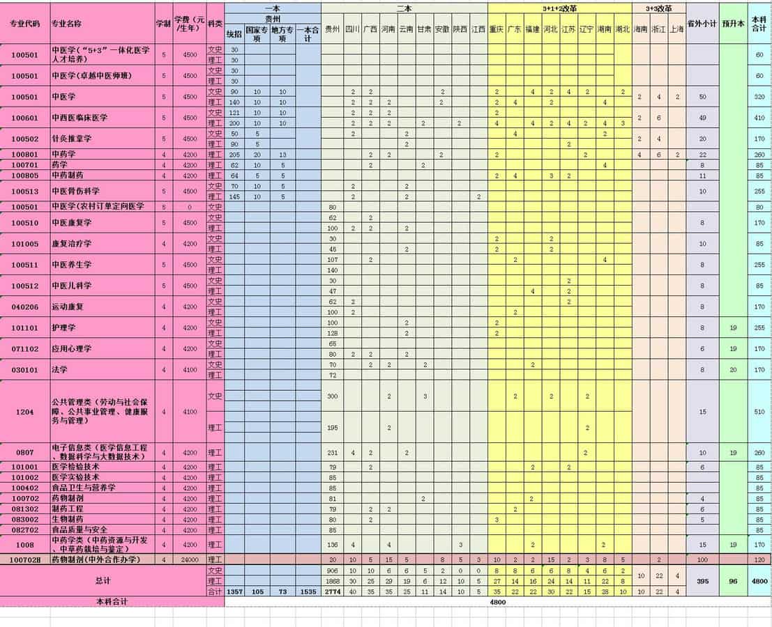2021年贵州中医药大学招生计划已经公布,以下是贵州省及全国各专业招生人数,这是填报志愿时非常重要的参考数据,供大家参考,如有变动,以学校官方公布为准: