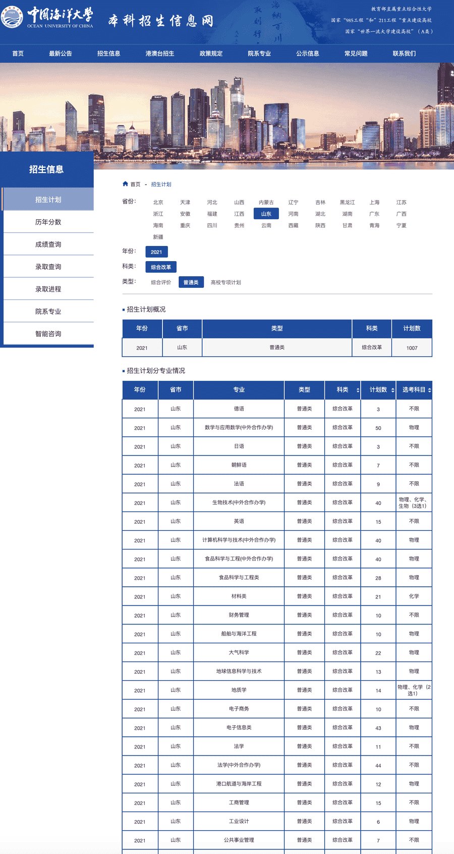 中国海洋大学2021年招生计划官网发布地址:http://lqcx.ouc.edu.cn/static/front/ouc/basic/html_web/zsjh.html