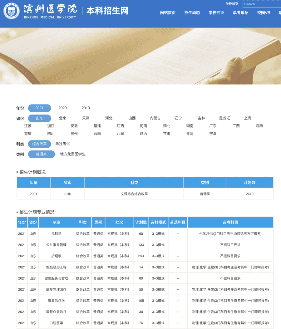 滨州医学院2021年各省市招生计划查询地址:https://zb.bzmc.edu.cn/zsjh/list.htm