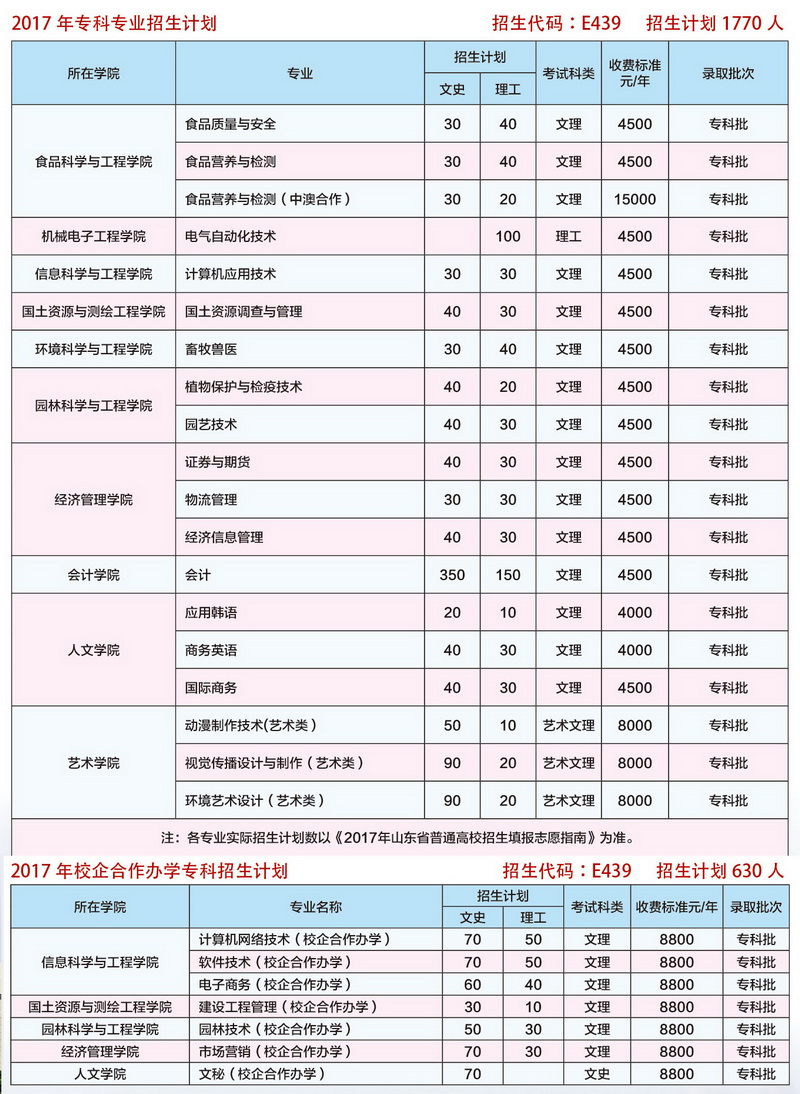 2024山东工程职业技术大学招生计划及各专业招生人数