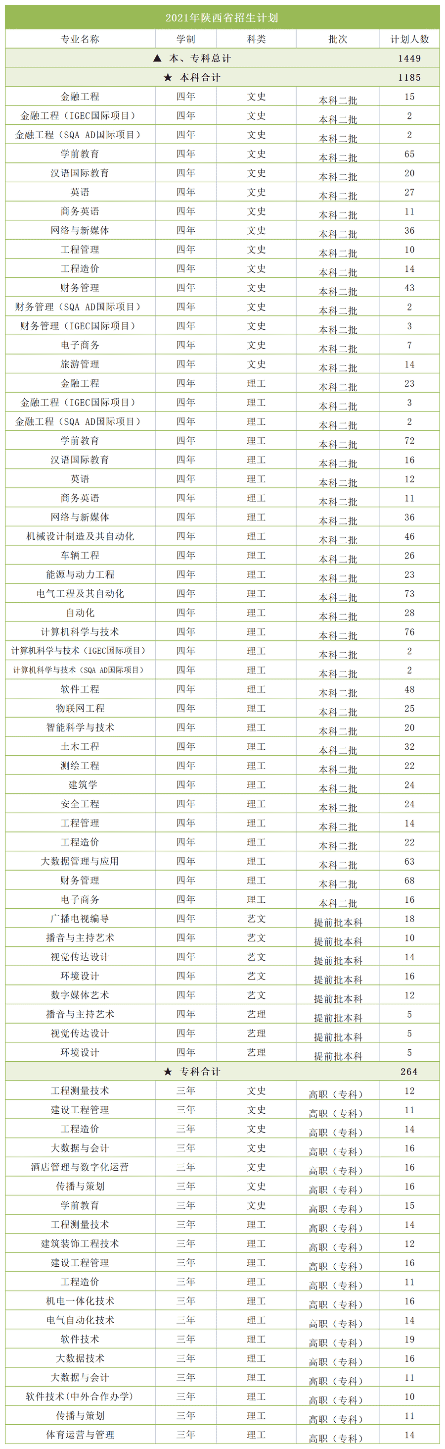 2021年西安科技大学高新学院招生计划已经公布,以下是陕西省各专业招生人数,这是填报志愿时非常重要的参考数据,供大家参考,如有变动,以学校官方公布为准: