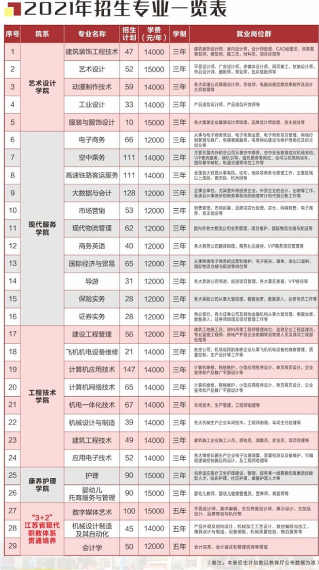 2021年太湖创意职业技术学院招生计划已经公布,以下是各专业招生人数,这是填报志愿时非常重要的参考数据,供大家参考,如有变动,以学校官方公布为准: