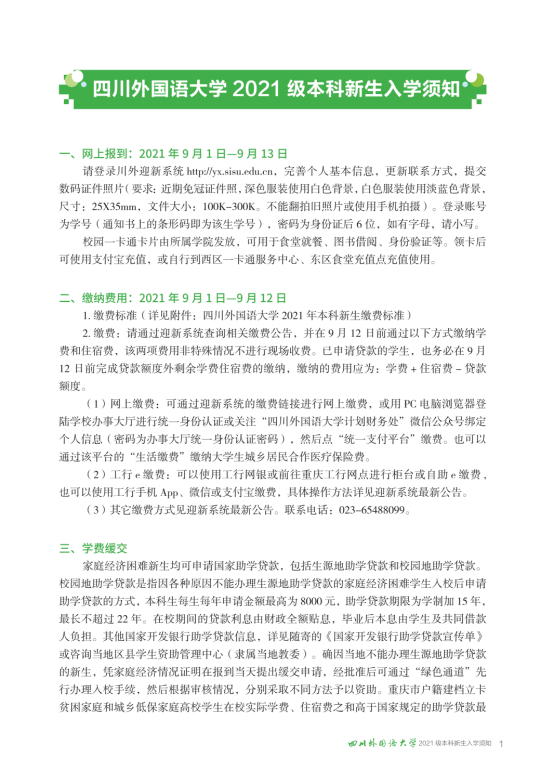 四川外国语大学2021级本科新生入学须知 时间:2021-07-14 12:03 招生计划 文章来源(官网发布地址):http://zs.sisu.edu.cn/f/newsCenter/article/82d80b17e97646c39b12a729682c63bb官网发布缓存图(部分):