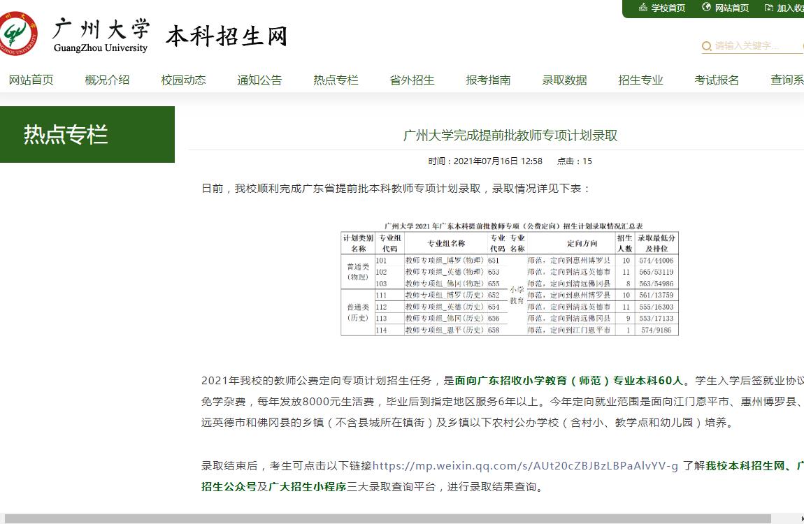 内容:广州大学2021年提前批教师专项计划录取结果【一键点击去官网浏览】