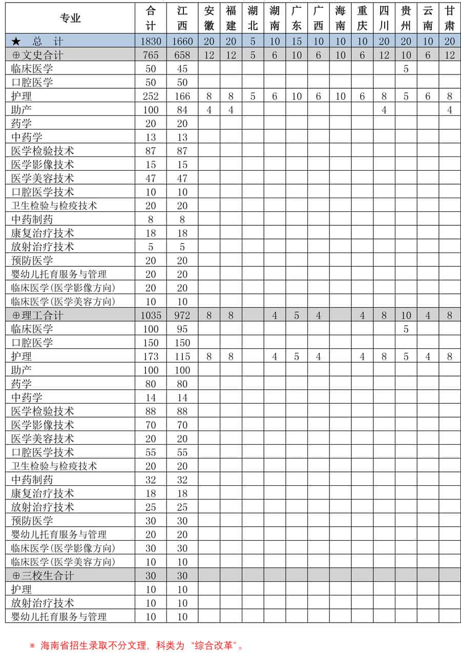 2021年江西卫生职业学院招生计划已经公布,以下是江西省及全国各专业招生人数,这是填报志愿时非常重要的参考数据,供大家参考,如有变动,以学校官方公布为准: