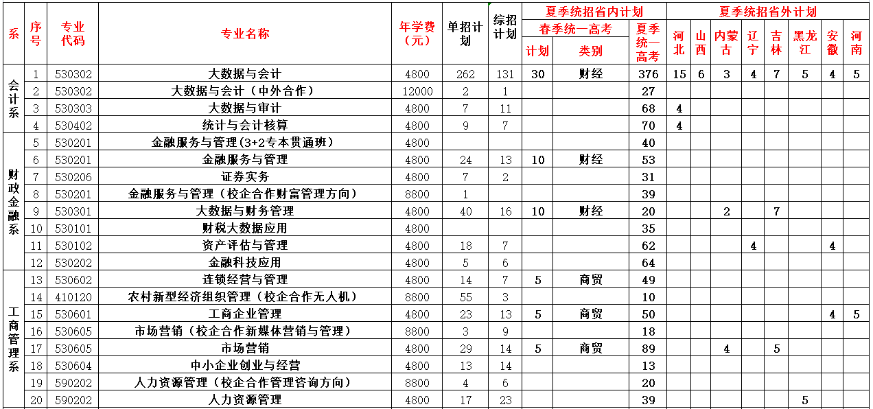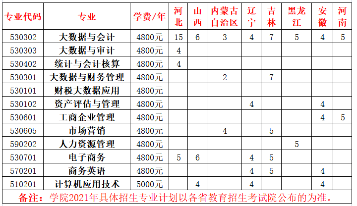 2021年山东经贸职业学院招生计划已经公布,以下是山东省及全国各专业招生人数,这是填报志愿时非常重要的参考数据,供大家参考,如有变动,以学校官方公布为准: