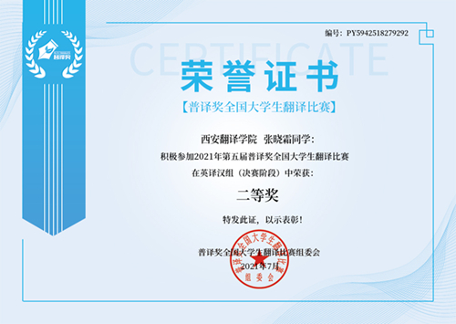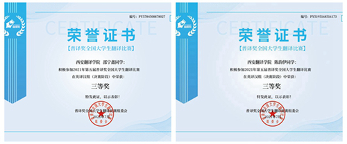 西安翻译学院学子在第五届“普译奖”全国大学生翻译比赛中再获佳绩