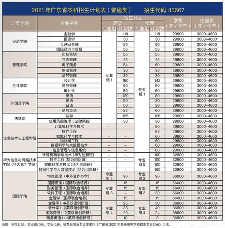 本科学费:普通类专业29800元/学年;艺术类、华为创新班学费32800元/学年;中英双语创新班学费为36800元/学年;国际联合培养和中外合作办学学费为66000元/学年。