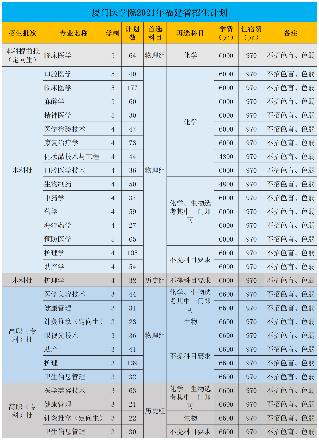 2021年厦门医学院学费是多少 各专业收费标准一览